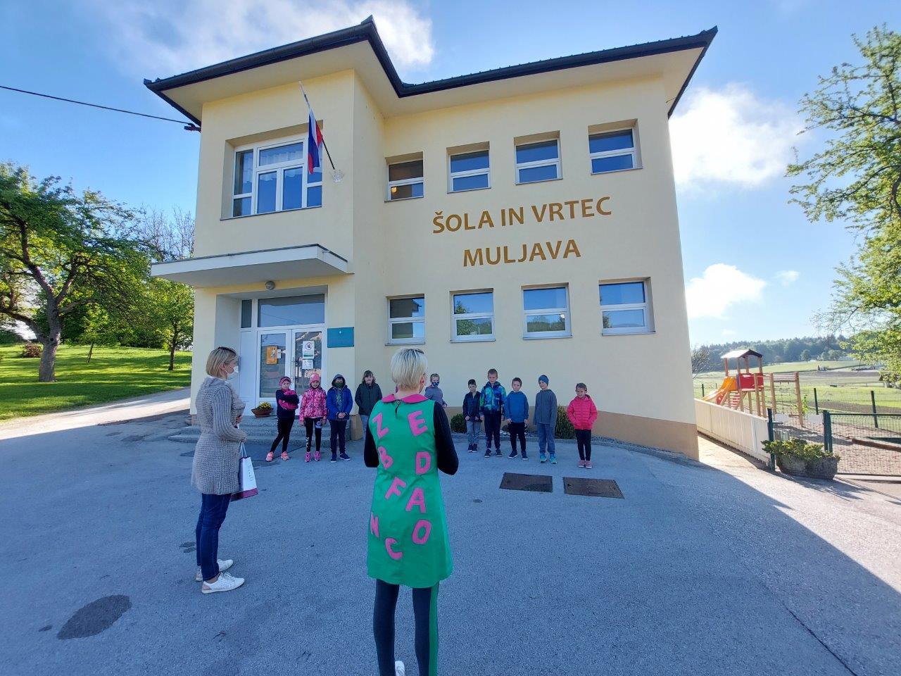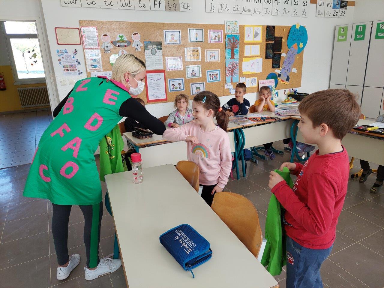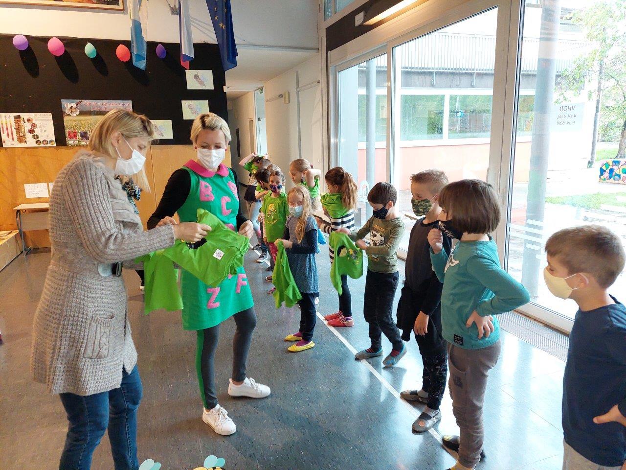 Knjižničarke iz knjižnice Ivančna Gorica so obiskale vse drugošolce kar pred njihovo šolo. Zelena bralka Tinca (knjižničarka Anita Globokar) je otrokom čestitala in povedala, da mora tudi sama še veliko brati, da bo postala dobra bralka. Sedaj je še malo zelena kakor jabolko. In več ko bo brala, bolj bo zorela, manj se ji bo zatikalo in bolj bo razumela prebrano. Potem je slavnostno podelila učencem zelene majice in skupaj so se fotografirali. V razredu smo jim pripravili še eno presenečenje, namreč Mestna knjižnica Grosuplje je za drugošolce pripravila virtualno predstavo Po Sloveniji s popotnikom Jakom, s katero so učenci spoznavali kulturne znamenitosti Slovenije na šaljiv način. Tisti dan je bil zanje še posebno prazničen.
