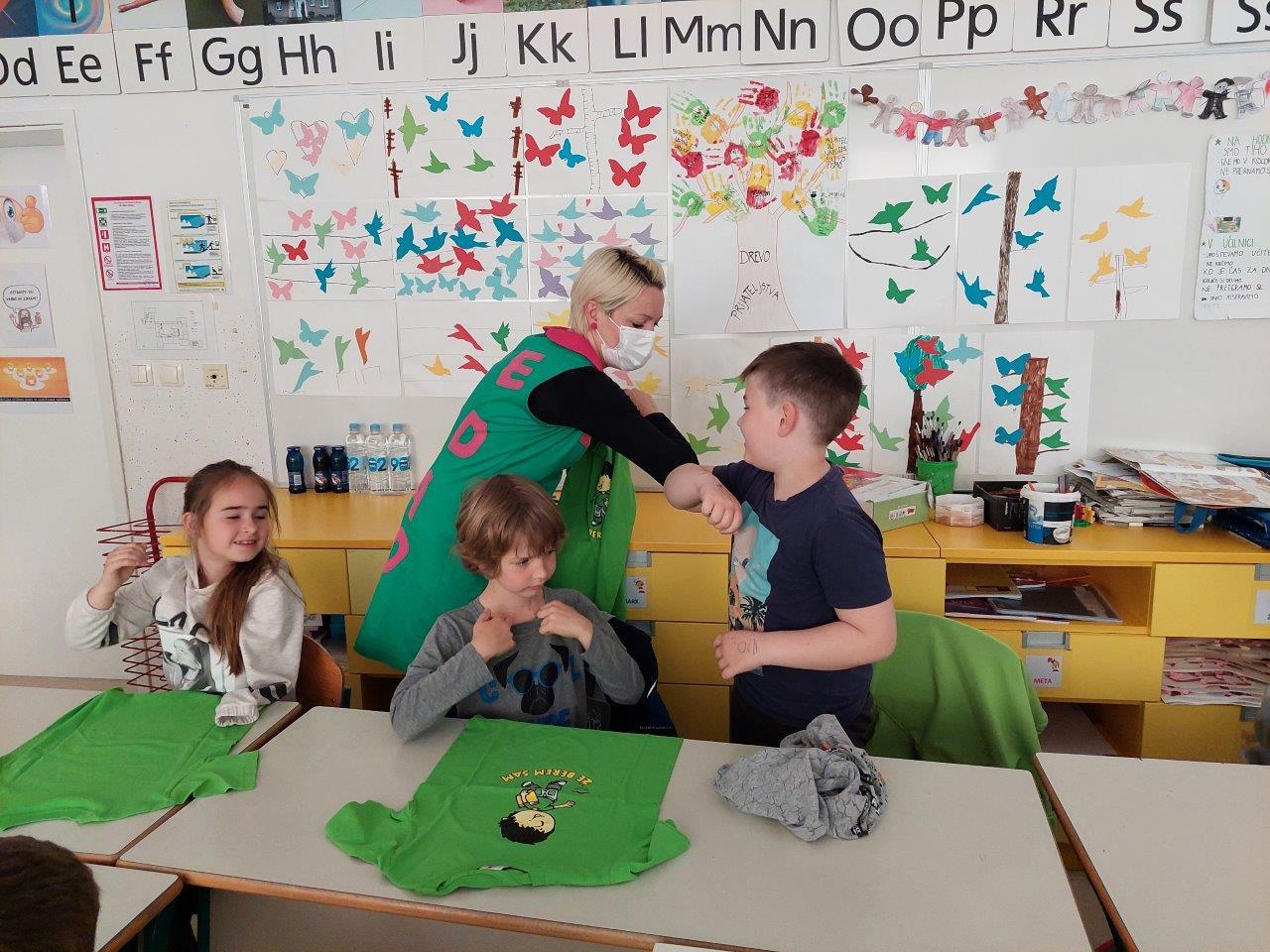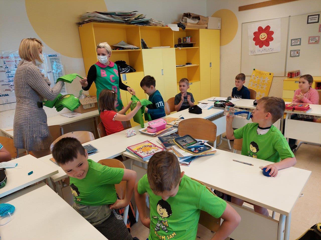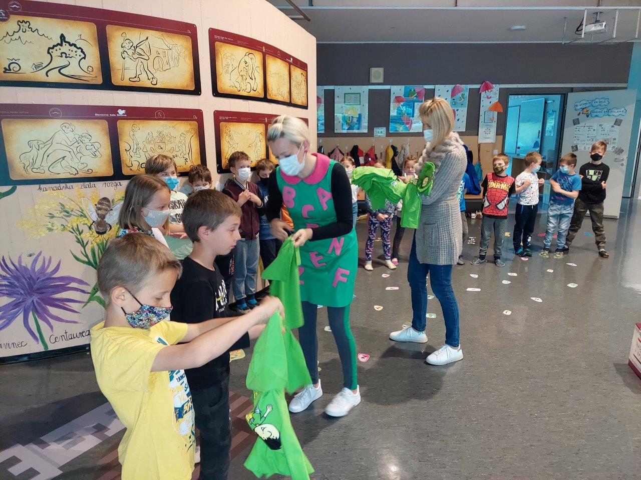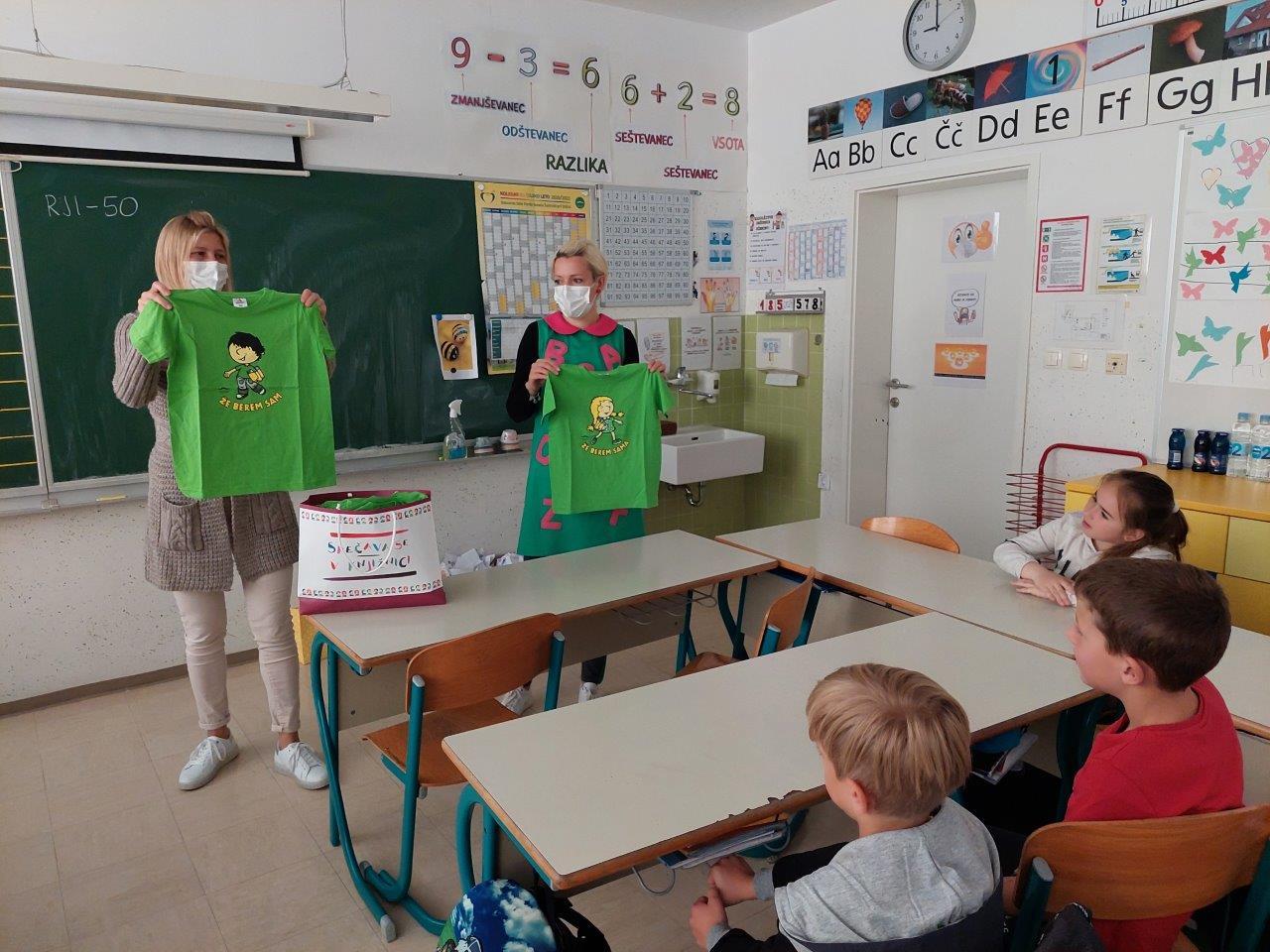 Majice, ki so jih prejeli drugošolci, so zelene barve in ponazarja občinsko podobo »Prijetno domače«. Na majicah je za deklice ilustrirana Zelena bralka Tinca, pod katero piše »Že berem sama«, in za dečke Zeleni bralec Bine, pod katerim piše »Že berem sam«.