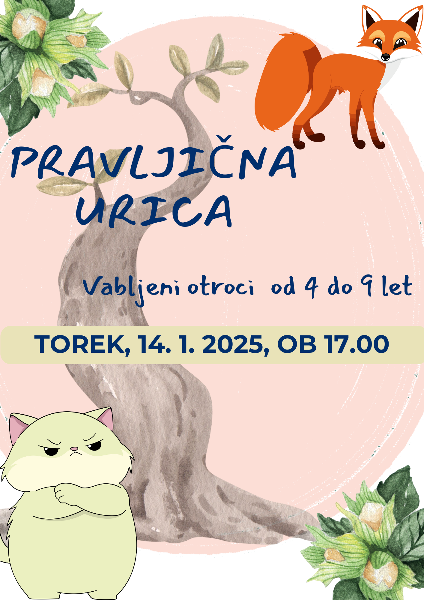 Mestna knjižnica Grosuplje v torek, 14. 1. 2025 ob 17. uri vabi otroke, stare od 4 do 9 let na tedensko pravljično urico. Spoznali bomo zvitega mačka in naivno lisico, se poigrali in ustvarjali. Dobrodošli!
