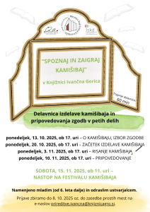 V Knjižnici Ivančna Gorica organiziramo delavnico izdelave kamišibaja in pripovedovanja zgodb v petih delih. Na prvih srečanjih se bodo udeleženci naučili, kaj je kamišibaj, kako izbrati zgodbo zanj, v teoriji bodo spoznali, kako izdelati kamišibaj, potem se bodo lotili risanja in se učili pripovedovanja. Srečanja se bodo zaključila v soboto, 15. novembra 2025, s Festivalom kamišibaja.